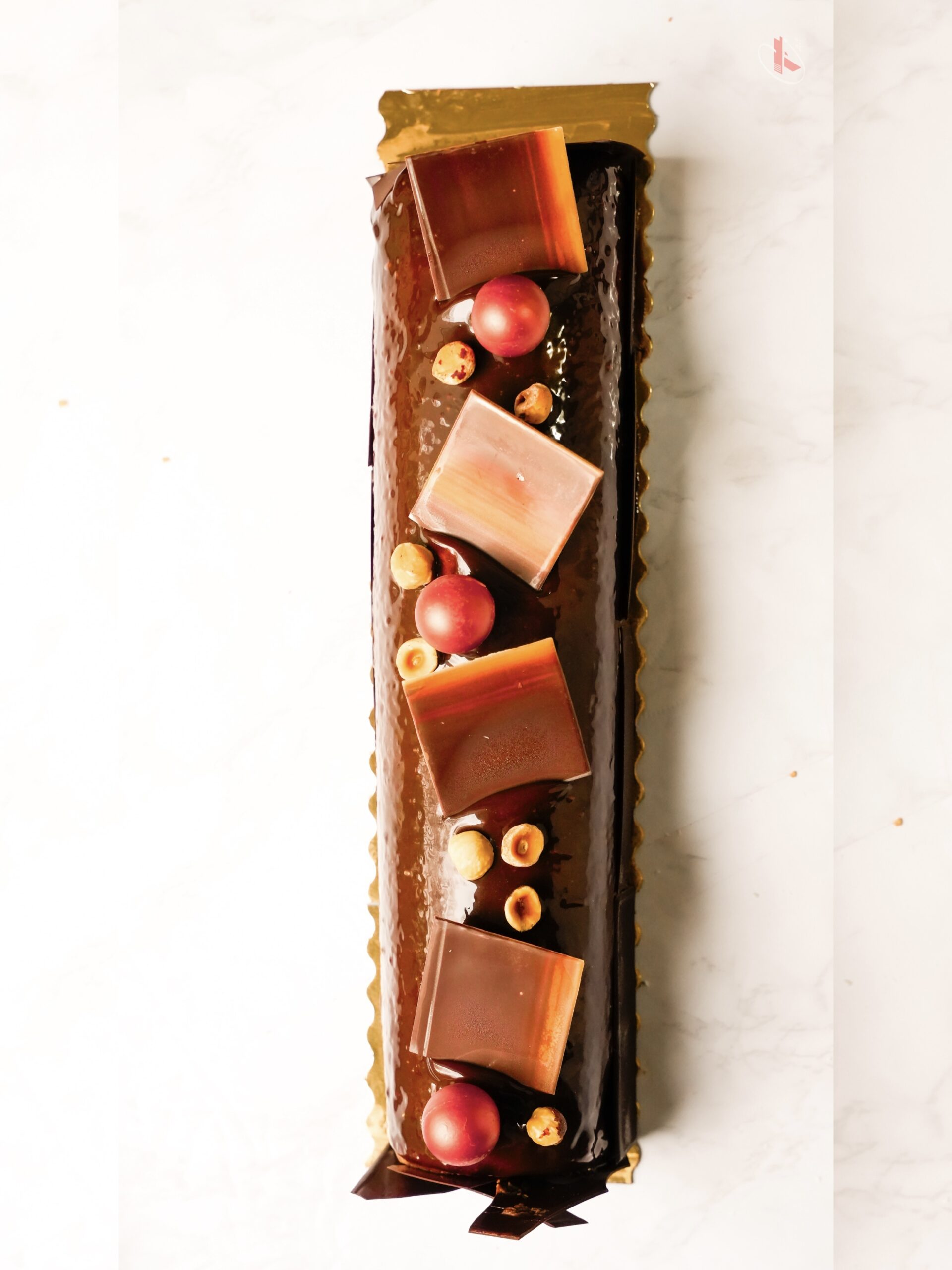 2/ Un classique pour tous les amateurs de chocolat : Bûche Chocolat Fruits rouges Praliné