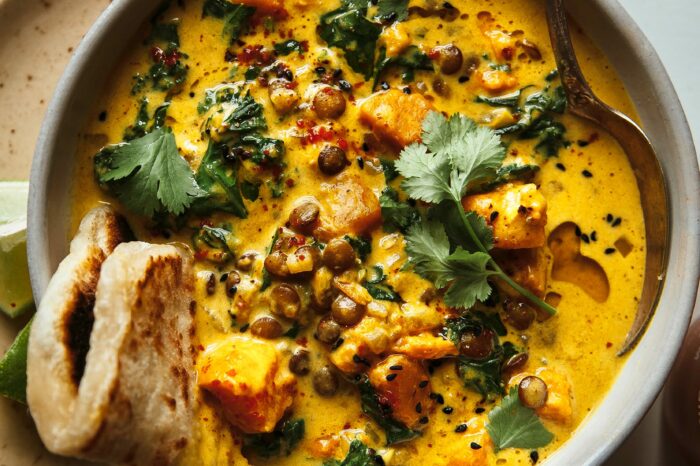 DétailsCe crémeux ultra simple au lait de coco est une tuerie insoupçonnée. Le crémeux du curry coco, une alliance parfaite avec des petites patate douces, ultra douces. Un plat gourmand, diététique et original